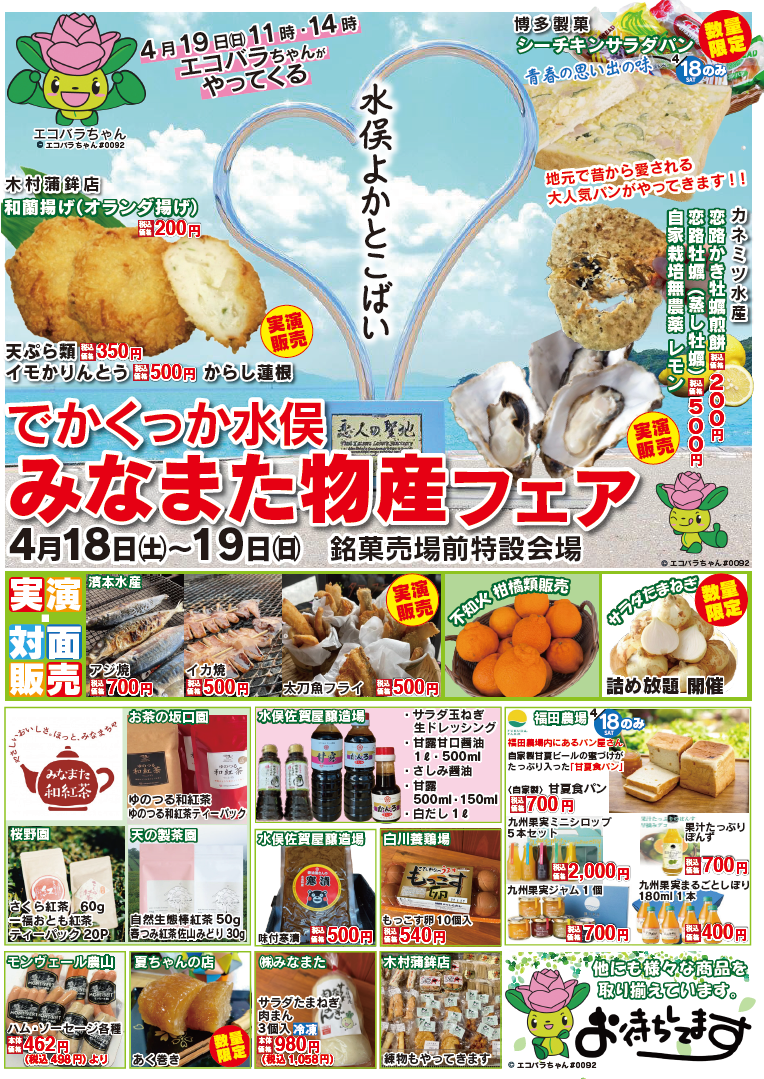 2026年4月18日(土)~19日(日)に県内最大級の物産館・志来菜彩にて「みなまた物産フェア」が開催されます!